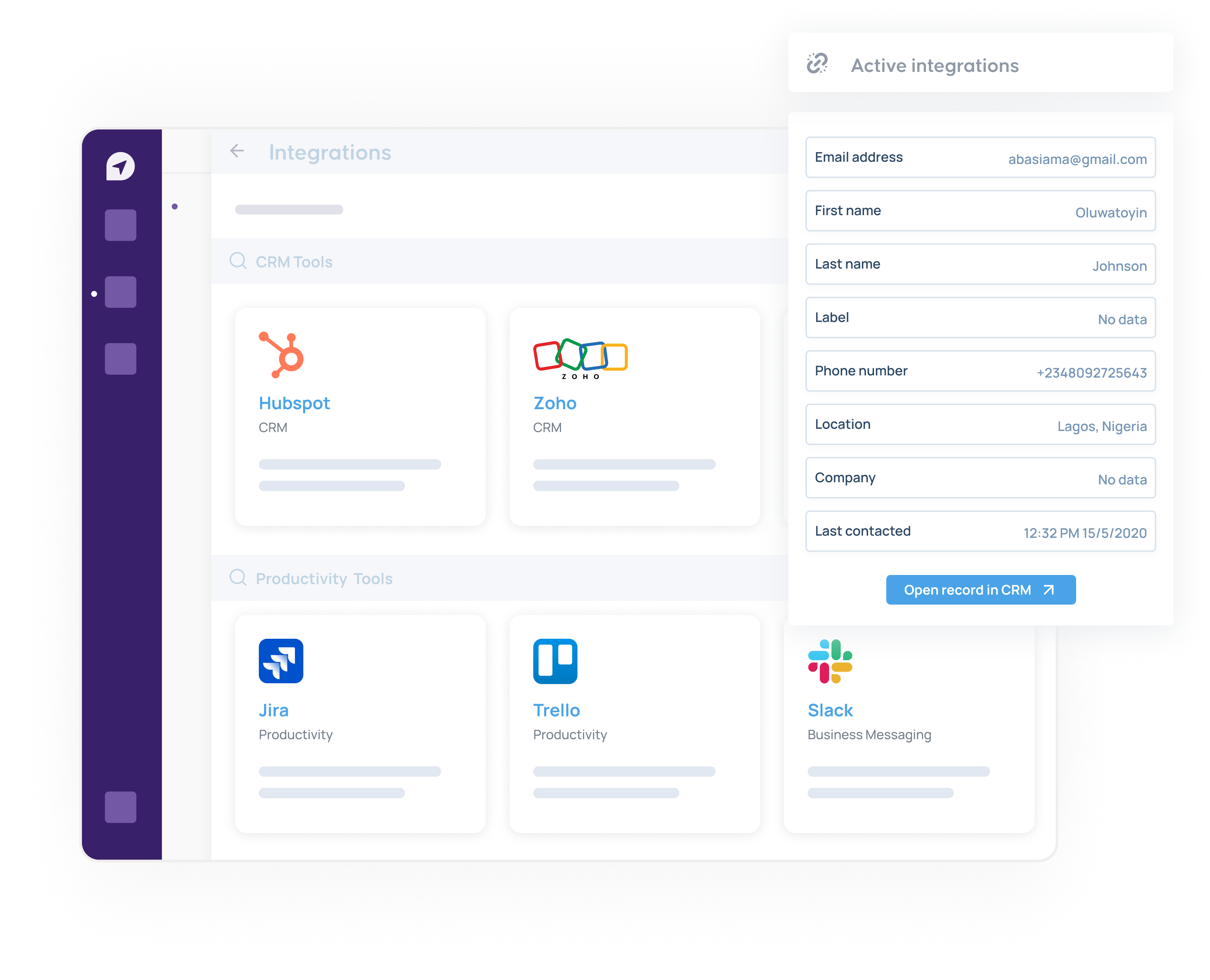 Integrate CRM to send and sync leads data.